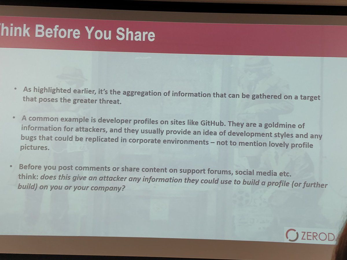 at my work's tech conference - including all the terrifying ways that attackers can get your data (down to TripAdvisor reviews??)