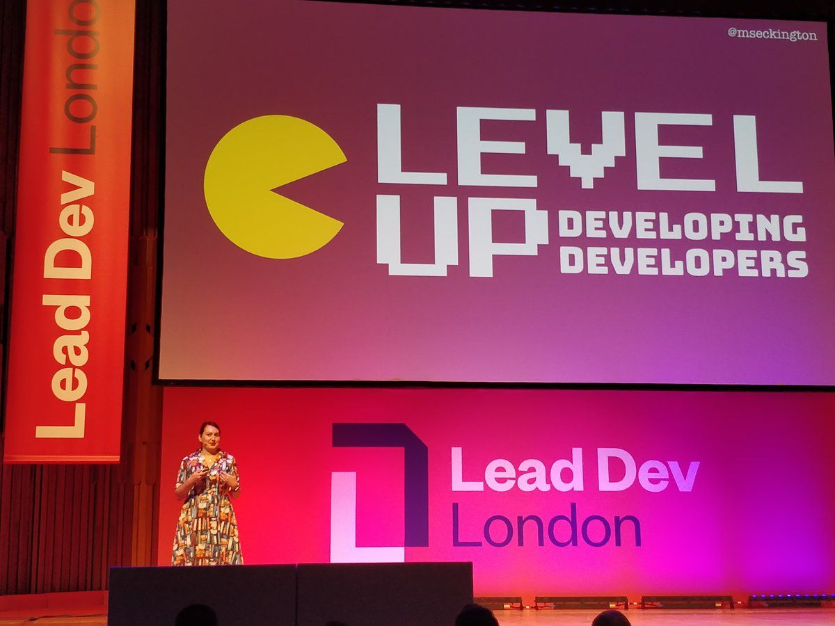 mseckington steps in at the last minute with the best dress and some excellent video game analogies for levelling up engineers #LeadDevLondon