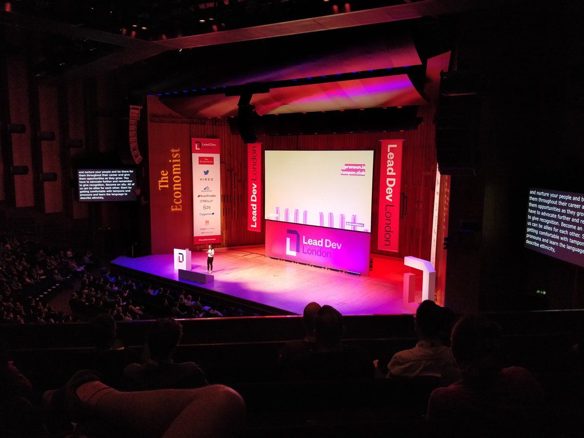 "Start getting comfortable with tampons and pronouns and learn the language to describe ethncity. Don't say "guys". Stop using "male/female/other radio buttons in forms. Use that privilege to support and boost people who need it most." doramilitaru 🔥 #LeadDevLondon