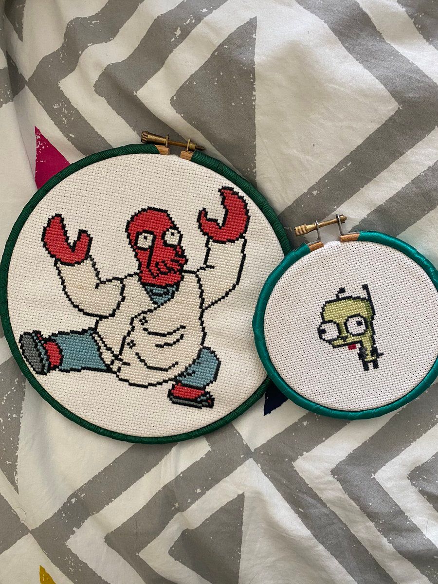 Zoidberg and Gir, from free cross stitch patterns I found online